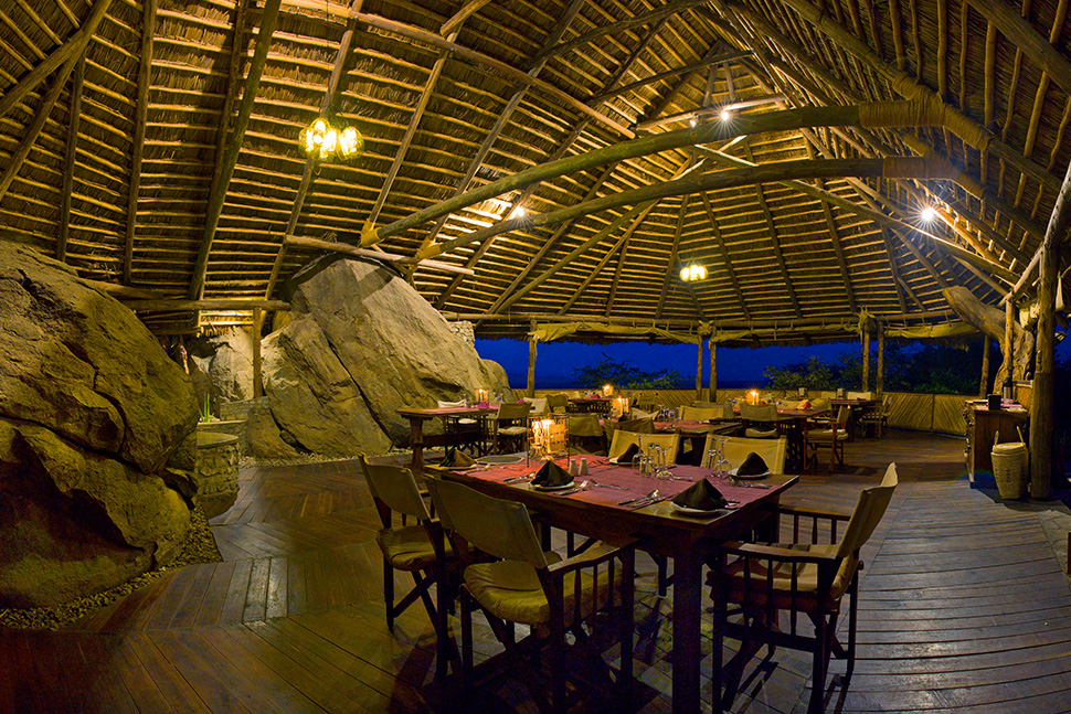 Les espaces communs sont nichés dans la roche, sous des toits de chaume impressionnants. Deux restaurants – un central et un plus intimiste – vous accueillent au moment des repas, tandis qu’un bar panoramique et un salon perché dans les rochers invitent au calme et au partage, face aux plaines infinies.